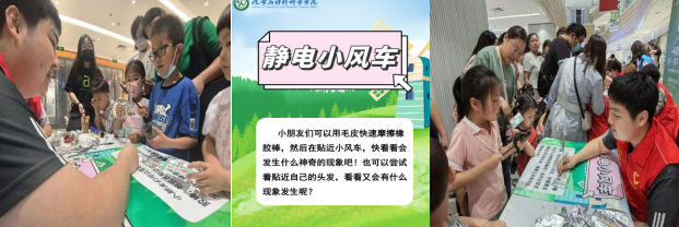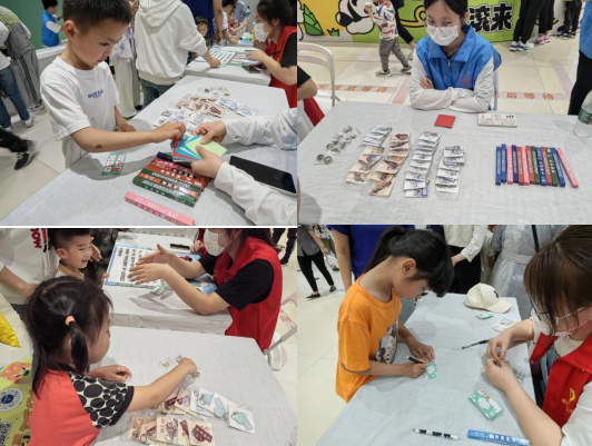 本次科技展以打卡集章的形式進行,每個少年兒童在簽到完后就可以領(lǐng)取專屬集章卡片,然后分別去各個攤位玩游戲、做小實驗打卡,完成后即可獲得活動專屬印章!集滿六個章就可以去兌獎處抽獎。兌獎處分別設(shè)有化學(xué)小胸章,精美鑰匙扣和盲盒筆三個獎項,這為少年兒童們增加了勇敢探索的動力,為活動畫上完美的句號!在活動的最后,他們都獲得了自己心儀的小禮品,并與南京師范大學(xué)化學(xué)與材料科學(xué)學(xué)院的賽先生魔法課堂團隊拍了合照。