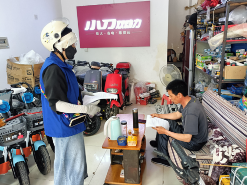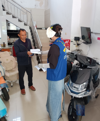 整治期間,網(wǎng)格員鄭冉對轄區(qū)電動車經(jīng)營戶開展逐個入戶摸底登記,主要查看電動車銷售方證照是否齊全、是否有合格證、強制3C認(rèn)證、是否銷售假冒偽劣、商標(biāo)侵權(quán)和非法改裝電動車等情況?,F(xiàn)場檢查時,網(wǎng)格員鄭冉明確要求商戶規(guī)范經(jīng)營,對有商鋪出店經(jīng)營、電動車無序停放及私拉電線充電等現(xiàn)象進(jìn)行說服教育,要求其認(rèn)真履行“門前三包”責(zé)任,規(guī)范電動車停放,不允許存在店外經(jīng)營、店外維修等行為,并要求經(jīng)營戶盡快將門店前的“僵尸”電動車、亂堆放的材料清理干凈,確保了轄區(qū)環(huán)境的整潔、有序。