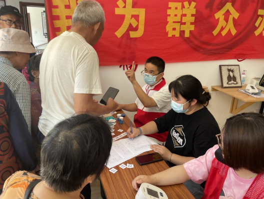 活動(dòng)現(xiàn)場(chǎng),志愿者們安排居民有序排隊(duì)進(jìn)行檢查,醫(yī)生給居民們進(jìn)行測(cè)量血壓、餐后兩小時(shí)血糖測(cè)量等基礎(chǔ)醫(yī)療服務(wù),并囑咐居民們?cè)谌粘I钪幸B(yǎng)成“低油、低脂、低糖”的生活習(xí)慣,進(jìn)行適量運(yùn)動(dòng),定期體檢,做到“無(wú)病早防、有病早治”。隨后,志愿者給居民朋友開展健康保健宣講,耐心解答居民們提出的疑問,針對(duì)高血糖的居民進(jìn)行詢問,了解他們生活習(xí)慣,指導(dǎo)他們規(guī)范用藥。增強(qiáng)居民的預(yù)防疾病意識(shí),幫助居民更好地了解自身健康狀況。