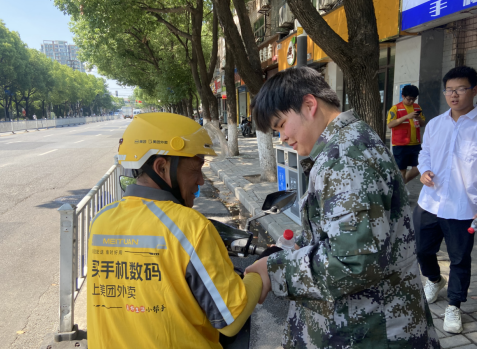 6月天氣漸熱,南京市棲霞區(qū)馬群街道果場社區(qū)黨總支、果場社區(qū)退役軍人服務(wù)站、“寧小蜂”驛站、社區(qū)“齊益果”積分制志愿者、民兵志愿者共同開展關(guān)愛新業(yè)態(tài)新就業(yè)群體行動,走上街頭,給快遞小哥、外賣小哥送水,讓他們在這個炎熱的季節(jié)感受到關(guān)心和關(guān)愛。
