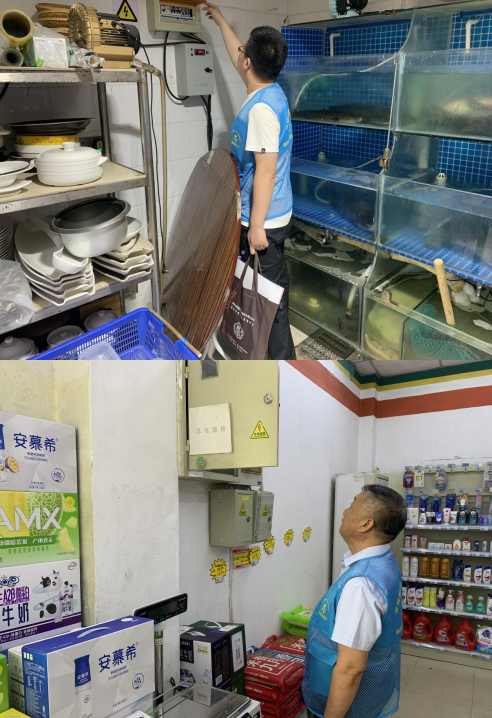 檢查過程中,工作人員對消防器材配備、疏散通道暢通、漏電保護裝置通等進行了詳細檢查,同時向商戶講解滅火器使用方法以及其他安全知識。