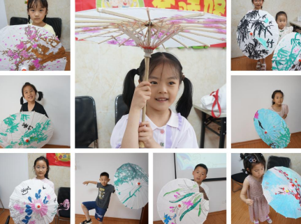 細(xì)雨如絲的江南,悠長寂寞的小巷,一把孤寂的油紙傘和著雨的嘆息,撐出了一個青年詩人在特定時代的哀婉的心曲。結(jié)合時代背景,小老師帶領(lǐng)孩子一起體味詩人對理想、人生和美好事物的信念和追求。接著,小老師給孩子們講述油紙傘的起源和歷史,大家一起學(xué)習(xí)了油紙傘的制作工藝和內(nèi)涵寓意。最后,孩子們充分發(fā)揮自己的想象力,認(rèn)真投入到繪畫創(chuàng)作中。他們一筆一畫勾勒出自己心中的圖案,靈活的小手游走在傘面和顏料之間,一個個美麗的圖案呈現(xiàn)在紙傘上。