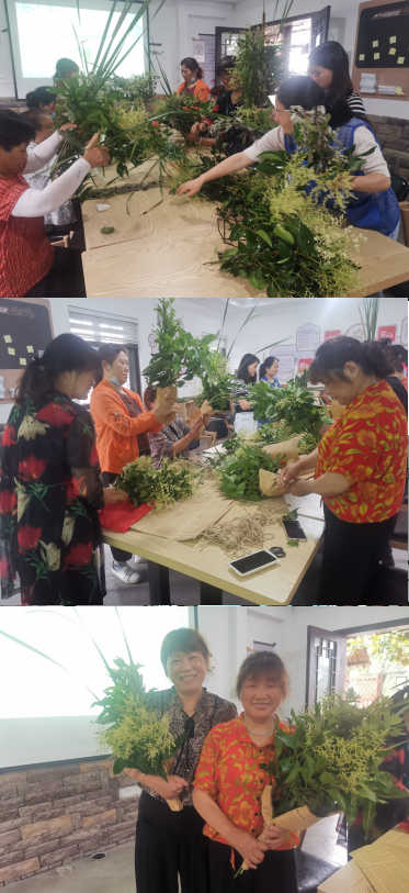 每逢端午時(shí)節(jié),家家戶戶都會(huì)把艾草插在門(mén)口,祈求平安,辟邪祛病。隨后,大家開(kāi)始了動(dòng)手實(shí)踐,艾草、菖蒲葉、桃樹(shù)枝、香樟果......在志愿者的指導(dǎo)下,大家熱情高漲,運(yùn)用豐富的花材認(rèn)真設(shè)計(jì)裝扮節(jié)日的花束。在一雙雙靈巧的雙手下,一件件芬芳美麗的端午花束作品誕生了,美好、向上的力量在這次活動(dòng)中得到了充分的體現(xiàn)。