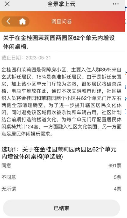 近日,金陵驛社區(qū)通過(guò)“掌上云”平臺(tái)投票系統(tǒng)針對(duì)增設(shè)休閑桌椅事項(xiàng)征求轄區(qū)居民意見(jiàn),此項(xiàng)舉動(dòng)在“掌上云”小程序里得到了居民的大力支持。“線上議事真的是太方便我們居民了,以前張貼告示有什么意見(jiàn)還需要再去社區(qū),現(xiàn)在手機(jī)上就能操作了。”老黨員田師傅激動(dòng)地說(shuō)。