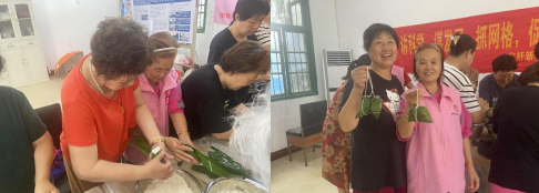 社區(qū)還在本次活動(dòng)中安排了包粽子活動(dòng)環(huán)節(jié)?;顒?dòng)現(xiàn)場(chǎng),社區(qū)工作人員提前準(zhǔn)備好了糯米、紅棗、粽葉等食材,工作人員講解了包粽子的具體方法,并作出示范。居民們圍在一起,大家躍躍欲試想展現(xiàn)自己技術(shù)。糯米、紅棗等在粽葉中填滿扎牢,一只只包含愛意祝福的粽子在“老行家”們的手中迅速成形。沒有經(jīng)驗(yàn)的新手在社區(qū)工作人員的幫助下,邊看邊學(xué),直至熟練掌握包粽子技巧。大家互幫互助,協(xié)力合作,活動(dòng)現(xiàn)場(chǎng)粽葉飄香,傳來一陣陣歡笑聲。