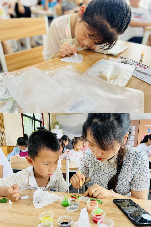 最后,老師介紹了掐絲琺瑯的歷史淵源、工藝特點、制作技藝等知識,并帶領小朋友們制作獨屬于自己的掐絲琺瑯“粽子”。繪畫、上膠、掐絲、剪絲、著色.......經(jīng)過一個多小時的操作。小朋友們用自己的巧手將一件件精美的掐絲琺瑯粽子掛件呈現(xiàn)在大家眼前。