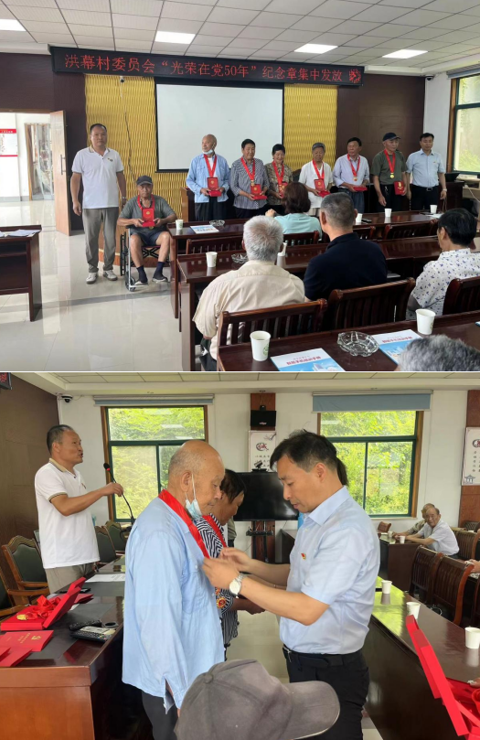 活動(dòng)伊始,洪幕村黨委書記親自為7位老黨員頒發(fā)“光榮在黨50年”紀(jì)念章,致以崇高的敬意,對(duì)他們表示熱烈地祝賀,感謝他們多年來無私奉獻(xiàn),對(duì)他們的付出深表感激。他們始終以人民利益為重,默默無聞地為人民服務(wù)。并鼓勵(lì)眾多青年黨員向他們學(xué)習(xí),向他們致敬,同時(shí)也要以他們?yōu)榘駱?,積極投身到社會(huì)主義事業(yè)中去,為實(shí)現(xiàn)中華民族偉大復(fù)興的中國夢(mèng)貢獻(xiàn)自己的力量。