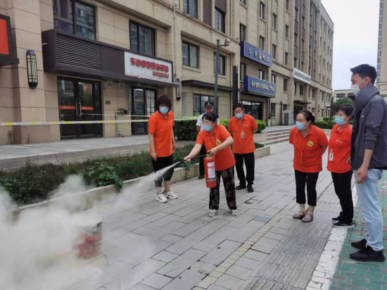 駱村社區(qū)組織開展小型商戶消防安全演練活動