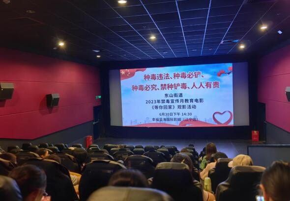 加大禁毒宣傳工作力度,進一步加強禁毒宣傳教育和警示教育,持續(xù)提高全民識毒能力、防毒態(tài)度、拒毒意識,6月30日下午,南京市江寧區(qū)東山街道邵圣社區(qū)組織轄區(qū)居民、退役軍人于金箔路幸福藍海國際影城觀看禁毒警示教育電影《等你回家》。
