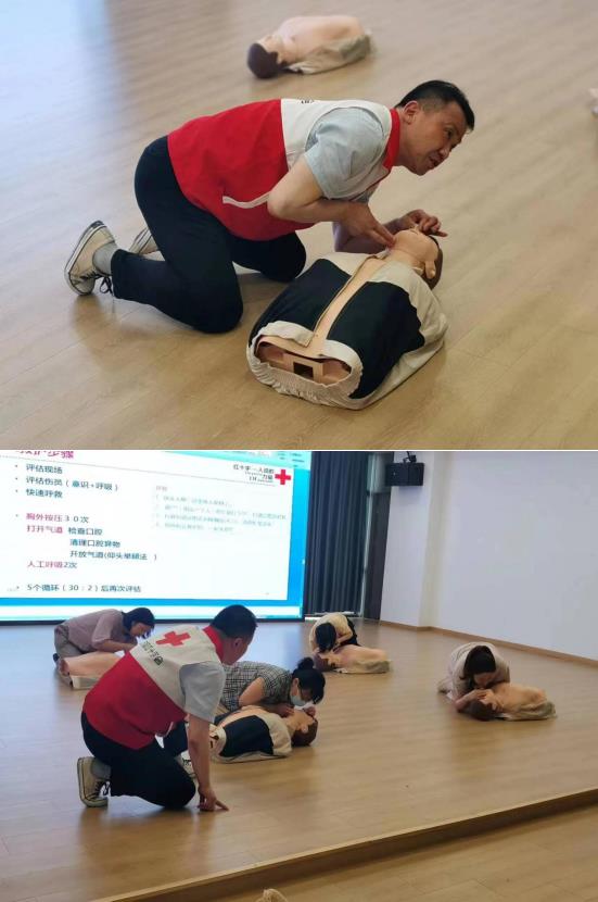 培訓分為理論學習、操作練習和考核三個環(huán)節(jié)。現(xiàn)場,紅十字會工作人員向學員們闡述了應急救護知識的必要性,詳細講解了突發(fā)狀況下的心肺復蘇、AED操作方法、氣道異物梗阻等相關急救知識,并安排學員輪流進行實踐操作,及時發(fā)現(xiàn)和糾正學員的失誤,彌補不足之處。