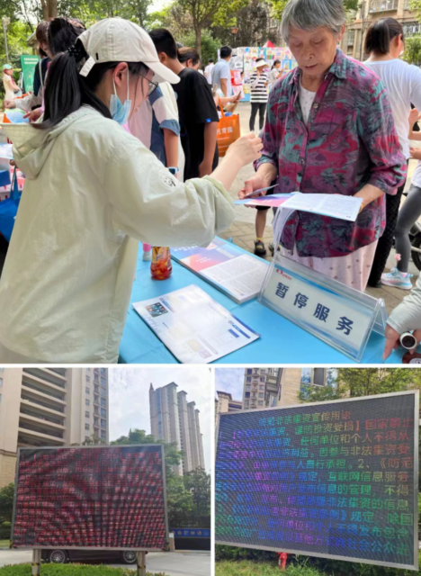 活動中,工作人員通過懸掛宣傳橫幅、戶外電子屏滾動播放宣傳標(biāo)語、發(fā)放宣傳手冊等方式、向群眾介紹非法集資的套路以及應(yīng)對方法。同時工作人員還號召大家及時舉報身邊非法集資活動,共同參與打擊非法集資。