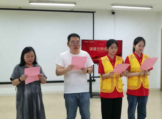 接下來,在場人員和志愿者共同誦讀文明倡議書。用朗讀的方式號召大家攜手同心,從點滴做起,不亂扔垃圾,創(chuàng)造整潔的生活環(huán)境。遵守交通規(guī)則,維護良好的城市秩序。文明有寧,一起為南京助力、為棲霞加油!