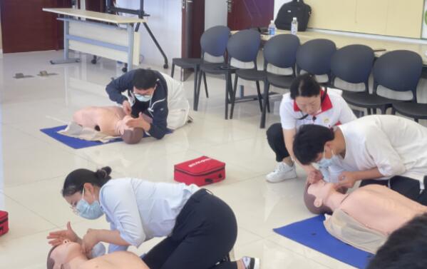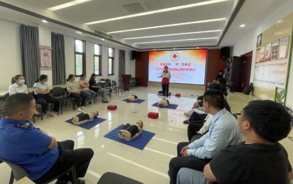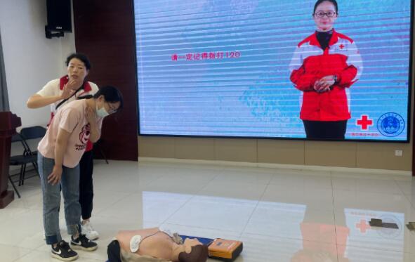 江寧區(qū)紅十字會培訓(xùn)老師將理論知識和技能實踐相結(jié)合,重點為大家講解心肺復(fù)蘇的操作方法,AED 操作方法、氣道異物梗阻等?,F(xiàn)場還利用假人道具讓大家上手操作,體驗了胸外按壓、人工呼吸、貼電極貼片等,大家對此表現(xiàn)出了濃厚的興趣,現(xiàn)場學(xué)習(xí)氛圍濃厚。