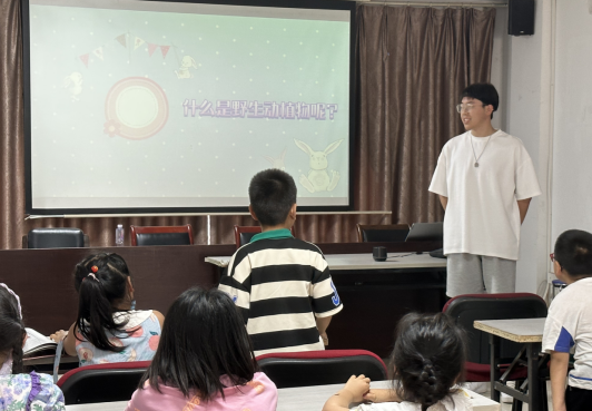 在認識野生動植物這堂課上,謝家昊同學帶領小朋友們認識野生動植物,了解什么是野生動植物和養(yǎng)殖動植物。并且學會找到野生動植物與養(yǎng)殖動植物的區(qū)別,了解野生動植物的普遍特征以及為什么會出現(xiàn)這些特征。其次教導小朋友們?nèi)绾伪Wo野生動植物,要與大自然成為好朋友。在上課過程中,小朋友們非常積極活躍,可能是對動物很感興趣,每位小朋友都有很多的疑問想要被解決,迫不及待地詢問。許多小朋友也針對于講的內(nèi)容相互開展討論,課堂氣氛十分活躍。