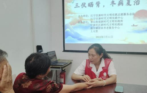 7月11日是今年夏季入伏第一天,三伏天是"冬病夏治"的好時節(jié),為了給社區(qū)老人科普宣傳三伏曬背、冬病夏治的好處,南京市江寧區(qū)東山街道中前社區(qū)新時代文明實踐站聯(lián)合德爾康居家養(yǎng)老服務(wù)中心開展“三伏曬背,冬病夏治”的主題活動。