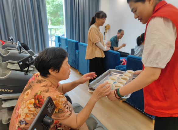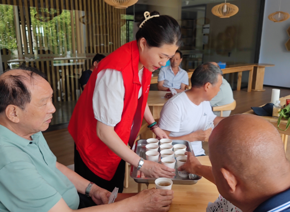 為了照顧不能吃糖的老人,志愿者們還貼心的把綠豆湯分成了兩種,小孩子們喝的是甜的綠豆湯,不能吃甜食的老人則喝的無(wú)糖綠豆湯。除此之外,志愿者們還細(xì)心詢問他們的身體情況并介紹夏季注意事項(xiàng),提醒再熱也不能貪涼,照顧好身體,平穩(wěn)度過這個(gè)炎熱的夏天。