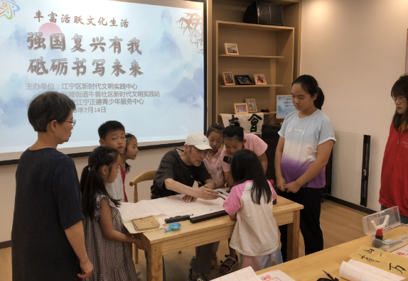 為了讓轄區(qū)青少年在暑假有一個健康的學習氛圍和環(huán)境,豐富活躍文化生活,領略中華書法的獨特魅力,南京市江寧區(qū)秣陵街道牛首社區(qū)新時代文明實踐站邀請專業(yè)書法老師為轄區(qū)青少年開展書法課活動。