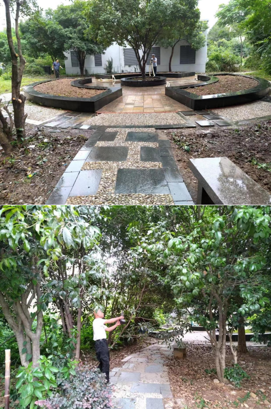 發(fā)現問題后,社區(qū)工作人員迅速行動,依托“掌上云社區(qū)”平臺定時推送信息、加強宣傳,提醒居民不要在花壇綠化出種植蔬菜,影響社區(qū)日常環(huán)境,給居民們造成困擾。隨后,社區(qū)工作人員組織專業(yè)人員立即清除了雜草和雜樹,并對裸露的黃土地區(qū)進行了綠化補植,撒種植草籽。7月12日,歷時兩天,該區(qū)域煥然一新,通過對樹木的修剪整理,不僅讓綠化植物煥發(fā)出勃勃生機,還使其形態(tài)更加美觀整齊,給人一種美感和和諧感。與此同時,修剪去枯枝敗葉和危險的枝條,有效消除了潛在的安全隱患,確保了行人和居民的安全。居民生活環(huán)境變得更加整潔、安全、有序,營造了良好舒適的宜居環(huán)境。