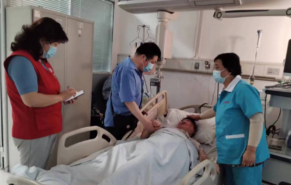 感到身體不適,孫師傅第一時(shí)間就想到了向社區(qū)和志愿者求助,志愿者馬阿姨就住在小區(qū)里,第一個(gè)到達(dá)孫師傅家,了解了相關(guān)情況后,和正趕來的社區(qū)工作人員取得聯(lián)系說明了情況,針對孫周師傅的情況,大家當(dāng)即決定把孫師傅送到最近的社區(qū)醫(yī)院進(jìn)行急救處理。早上8點(diǎn)左右,孫師傅的狀況得到暫時(shí)控制,又安排轉(zhuǎn)院到省中西醫(yī)結(jié)合醫(yī)院接受治療,社區(qū)工作人員和志愿者龔師傅、魏師傅一直在醫(yī)院陪同,做檢查、幫忙繳費(fèi)、取片子……直到把孫師傅安頓好住院治療,安排好護(hù)工,大家才放心回家。臨走還叮囑孫師傅,要注意休息,好好配合治療,家里兩個(gè)孩子不用擔(dān)心,社區(qū)已經(jīng)聯(lián)系好志愿者和社區(qū)托老中心,幫忙照顧兩個(gè)孩子,有需要幫助,就給社區(qū)居委會打電話。