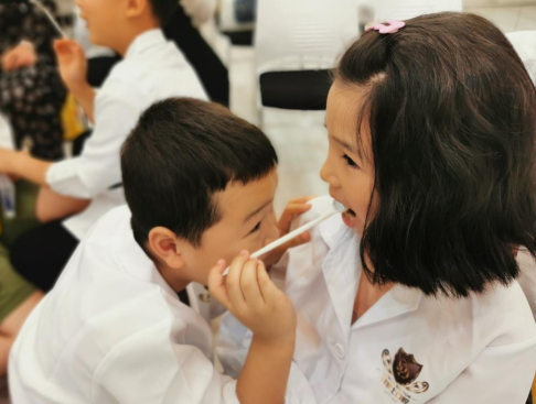 在下午的職業(yè)體驗(yàn)環(huán)節(jié)中,學(xué)員們分別扮演了前臺(tái)接待員和客戶、牙醫(yī)與護(hù)士的職業(yè)角色,體驗(yàn)前臺(tái)接待、牙醫(yī)和護(hù)士工作等工作流程。通過(guò)親身體驗(yàn),孩子們對(duì)客戶服務(wù)、患者溝通治療方案和進(jìn)行實(shí)際治療等有了進(jìn)一步的了解,并且學(xué)會(huì)了如何正確拍牙片、配合醫(yī)生進(jìn)行治療和器械消毒等。