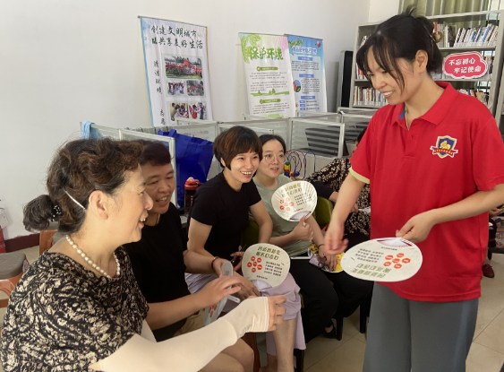 化纖新村的網(wǎng)格員將網(wǎng)格員職能制作成了宣傳扇子在轄區(qū)內(nèi)發(fā)放,告知轄區(qū)居民網(wǎng)格員職能包括信息采集、隱患排查、人口管理、心理咨詢、矛盾化解、治安防范、政策宣傳、便民服務(wù)等,宣傳時網(wǎng)格員主動亮明身份,耐心為居民答疑解惑,通過面對面宣傳交流的方式,充分調(diào)動居民參與度和活躍度,增強了群眾對網(wǎng)格員工作的認(rèn)同感和滿意度,強化了宣傳效果。此外,網(wǎng)格員還搜集整理轄區(qū)居民反映的合理化的建議及意見,及時上報反饋,能及時解決的立即解決,盡力做到讓居民滿意。