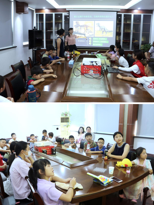 在活動中,社區(qū)志愿者以生動形象的語言向青少年介紹了人類發(fā)現(xiàn)恐龍的歷史及研究進程,青少年們聚精會神地傾聽著,仿佛置身于一個神秘的歷史世界。隨后,志愿者們以提問互動的形式向孩子們科普了地球生物的演化順序,簡單概括了不同時期恐龍的種類與特點。鼓勵大家談?wù)勛约簩铸埖目捶ê驼J知,激發(fā)了青少年們的思考和參與。