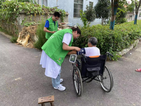 敲開一幢幢瓦房,帶來一聲聲問候。他們與每一位老人親切交流,了解老人們的身體狀況、生活習慣以及精神狀態(tài)。隨后,家庭醫(yī)生為老人們測量血壓,檢查身體指標,以確保他們的身體狀況良好。