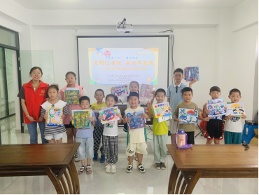 活動(dòng)開始,志愿者先為青少年們講解了“怎樣做到遠(yuǎn)離危險(xiǎn)區(qū)域”、“容易導(dǎo)致溺水的幾種情況”、“遭遇溺水如何自救”、“同伴落水怎么辦”等多重防護(hù)知識(shí)。緊接著,志愿者為孩子們播放了預(yù)防溺水“六不準(zhǔn)”、“四不要”安全視頻,通過視頻孩子們更直觀的感受到了學(xué)習(xí)防溺水知識(shí)的重要性?;顒?dòng)最后,志愿者帶領(lǐng)孩子們一起繪制防溺水宣傳畫,等孩子們畫完。志愿者通過提問的方式查驗(yàn)孩子們對防溺水知識(shí)的熟悉度。值得高興的是孩子們都能記住防溺水知識(shí)的要點(diǎn),為了表示獎(jiǎng)勵(lì),志愿者給每一位小朋友發(fā)放了文具禮盒。