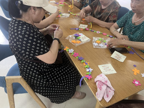 活動(dòng)現(xiàn)場(chǎng)熱鬧非凡,老年朋友們相互交流并愉快地分享自己的經(jīng)驗(yàn)和感受。通過這次活動(dòng),老年朋友們不僅獲得了一件可愛又獨(dú)特的花朵項(xiàng)鏈,更重要的是收獲了快樂和歸屬感。