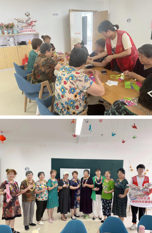 活動(dòng)以提供美麗、時(shí)尚、實(shí)用的飾品為目標(biāo),給老年人們提供了一個(gè)展現(xiàn)自己藝術(shù)天賦的舞臺(tái)?;顒?dòng)由馬群街道老年大學(xué)老師指導(dǎo),她耐心細(xì)致地向參與者們傳授制作花朵項(xiàng)鏈的技巧。在老師的指導(dǎo)下,老年人們根據(jù)自己的喜好和想象力,選取了各種各樣的材料,通過剪、貼、串等手法將花瓣形狀的剪紙巧妙地組合起來,將平凡的配飾變成了獨(dú)一無二的藝術(shù)品。