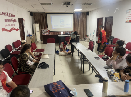 2023年8月9日夜間19:時(shí),南京市棲霞區(qū)馬群街道果場(chǎng)社區(qū)依托社區(qū)新時(shí)代文明實(shí)踐站,聯(lián)合區(qū)紅十字會(huì),邀請(qǐng)到心肺復(fù)蘇急救培訓(xùn)專業(yè)團(tuán)隊(duì)來到果場(chǎng)社區(qū)三樓活動(dòng)室,組織社區(qū)居民代表、樓棟長、黨員、民兵志愿者、退役軍人服務(wù)站志愿者、社區(qū)工作人員等參與了本次急救培訓(xùn)活動(dòng)。