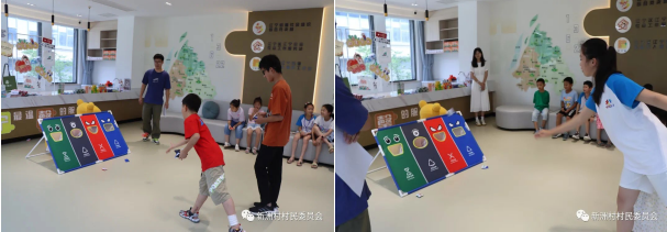 “紙上得來終覺淺,絕知此事要躬行。”垃圾分類光聽可不行,要能實際運用到生活中。活動中還準備了套圈分類、投擲沙包、垃圾分類飛行棋、垃圾分類轉(zhuǎn)盤等趣味小游戲,讓孩子們能夠在歡樂中強化并運用垃圾分類知識。