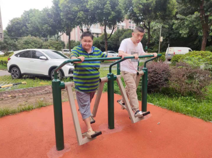 活動開始后,專委帶著殘疾人之家的學員開展日常健身活動。在他們的帶領下,大家進行了散步、慢跑、健身器材使用等鍛煉,健身活動中他們全心投入,努力完成,不僅鍛煉了身體也促進了彼此間的感情。