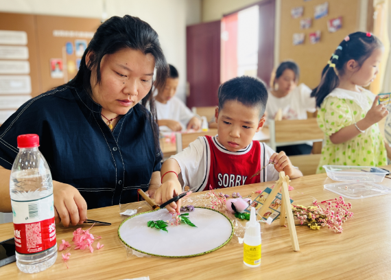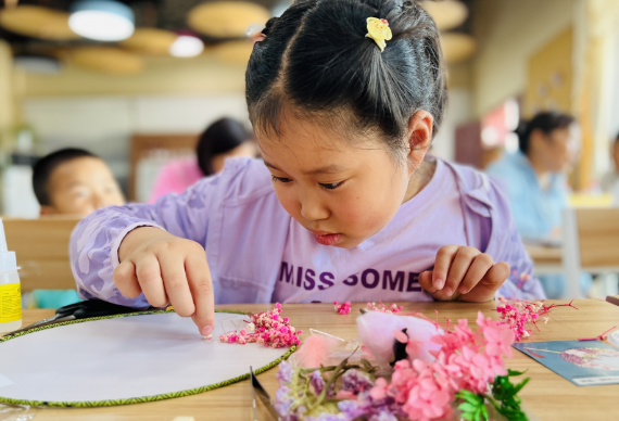隨后,小朋友們積極參與了永生花團(tuán)扇的制作活動(dòng)。工作人員為他們提供了各種顏色的干花、剪刀、膠水等材料,讓他們自由發(fā)揮創(chuàng)意,制作出獨(dú)一無二的永生花團(tuán)扇。小朋友們拿著工具,認(rèn)真地將各種美麗的花朵細(xì)心地粘貼在扇骨上?;顒?dòng)結(jié)束時(shí),小朋友們自豪地展示著自己制作的永生花團(tuán)扇,現(xiàn)場(chǎng)充滿了歡聲笑語。