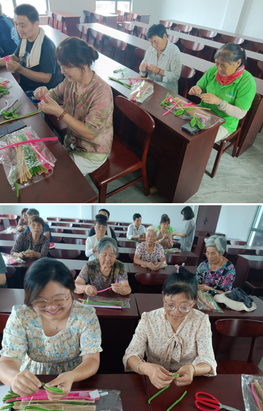 隨后,活動進入了一個富有創(chuàng)意的DIY環(huán)節(jié),志愿者給在場的村民現(xiàn)場準備了豐富的材料和工具,仔細講解了DIY扭扭棒花束盆栽的制作方法和注意事項,并耐心解答了村民們提出的疑問。制作過程中,各位積極融入其中,發(fā)揮自己的創(chuàng)造力。手中的花材和扭扭棒被巧妙地組合在一起,變成了色彩斑斕、生機勃勃的花束盆栽。每個參與者都全心投入地完成了自己的作品,并在志愿者的指導(dǎo)下,將它們裝飾得更加精美。這些成品不僅展示了殘疾人的才華和藝術(shù)感,同時也是他們對美好生活的向往和追求。