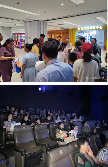 下午1點(diǎn)半,家長(zhǎng)和孩子們興致勃勃的來(lái)到了馬群花園城幸福藍(lán)海影院,迫不及待的從黨員志愿者那領(lǐng)取了電影票,并合影留念。進(jìn)入放映廳后,原本嘰嘰喳喳的小朋友都安靜下來(lái),或抱著爆米花、抱著飲料,靜靜的等待電影的開始。
