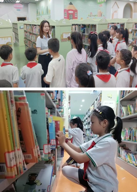 首先,小朋友們跟隨掌云“益踐青心”志愿者的步伐來到了南圖最新開放的少兒館,作為第一批小讀者,學(xué)習(xí)館藏圖書概況、圖書借還流程以及圖書整理方法。志愿者通過親自演示,耐心細(xì)致地講解圖書整理的操作規(guī)范。