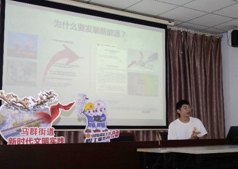 首先,科普志愿者圍繞新能源電池的發(fā)展前景、報廢電池如何合理回收、夏日電池易燃易爆如何有效避免與自我保護等內容,以《新能源電池的應用及電池爆炸的預防》為題,開展了本次探討學習新能源電池新知識的基礎講座,以點帶面地向轄區(qū)青少年講解了二十大報告中提出的“實現碳達峰碳中和是一場廣泛而深刻的經濟社會系統(tǒng)性變革”,讓大家切實了解國家新能源動力的實際發(fā)展需求,深刻領悟基礎研究在推動“雙碳”目標中的重要性。