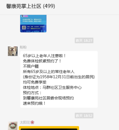 “我年年都會參加這個健康體檢,也是對自己負(fù)責(zé)”、“現(xiàn)在的助老政策真是越來越好”、“我家老人還沒參與,報個名,這個周六帶他過去”......群內(nèi),居民們紛紛回應(yīng)道。