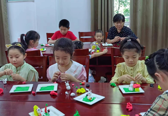 隨后,活動(dòng)進(jìn)入了最期待的環(huán)節(jié)——動(dòng)手制作泥人。每個(gè)孩子都被分發(fā)了一小塊黏土和一套工具,于是他們在何斌老師的指導(dǎo)下開始了創(chuàng)作。孩子們積極融入其中,盡情發(fā)揮他們的想象力和創(chuàng)造力。他們親手塑造出一個(gè)個(gè)栩栩如生的小兔子,在笑聲和歡樂中度過了愉快的時(shí)光。