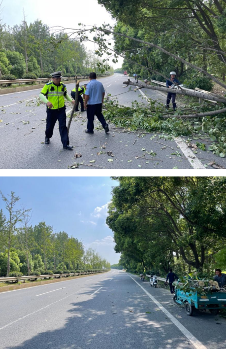 8月22日的大雨來勢洶洶,密集的雨滴,強勢的降雨量,導致省道的梧桐傾倒,十分影響行人的通行。8月23日南京市江寧區(qū)湖熟街道耀華社區(qū)網(wǎng)格員巡查時發(fā)現(xiàn)這一情況,立即積極聯(lián)系警務室、交警大隊人員聯(lián)動處置,隨后很快恢復暢通。
