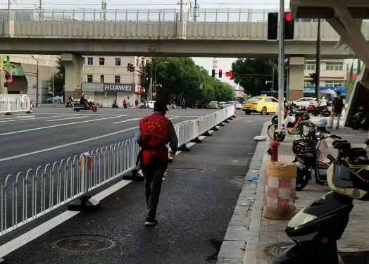 本次志愿在街的行動,以撿拾街面漂浮物垃圾為重點,集中處置塑料垃圾,緩解早晚高峰環(huán)衛(wèi)工人的工作壓力。在社區(qū)輕軌與地鐵站交匯路口,這里是早晚高峰電動車量聚集等待紅綠燈的集中點,除了撿拾垃圾外,志愿者們還進行了環(huán)保宣傳,不時提醒車主啟動車輛時要注意周邊路況。
