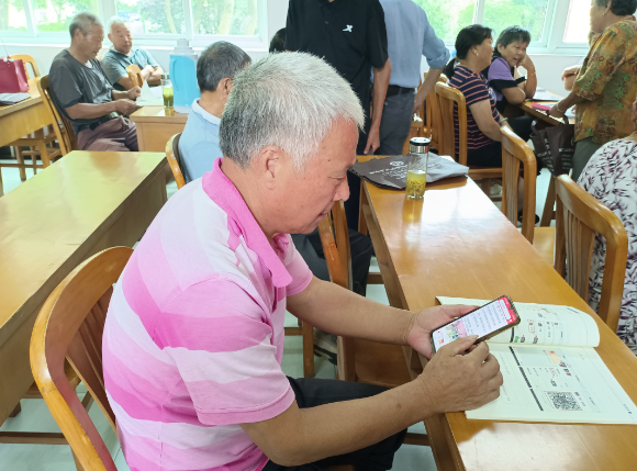 活動(dòng)現(xiàn)場(chǎng),志愿者通過詳細(xì)的講解和互動(dòng)教學(xué)的方式,耐心的為老人講解智能手機(jī)的使用方法,如網(wǎng)絡(luò)鏈接、預(yù)約掛號(hào)、掃碼支付、微信聊天、支付寶、拍照、拍抖音、存儲(chǔ)號(hào)碼、網(wǎng)上約車等基本操作。大家一邊聽一邊跟著志愿者共同操作,遇到不會(huì)的積極向志愿者請(qǐng)教。志愿者也悉心為他們講授手機(jī)使用中如何防范詐騙的要領(lǐng),讓每位老人都能安全熟悉使用智能手機(jī)功能,樂享智慧人生。