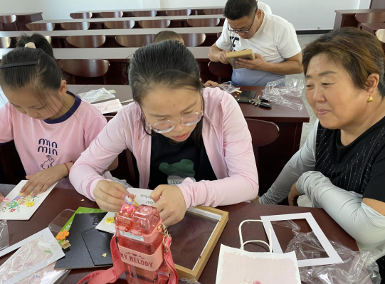隨后,孩子們開始制作相框錄音賀卡。這些錄音賀卡是學(xué)生們對老師的真摯表達(dá)。從錄音中傳出的是學(xué)生們的聲音,它們匯聚成一股感恩之情的洪流。有的學(xué)生表達(dá)了對老師耐心教導(dǎo)的感激之情,有的學(xué)生則用動人的語言講述了在老師幫助下的成長故事。在制作過程中,孩子們充分發(fā)揮了自己的想象力和創(chuàng)造力。相框上的裝飾物獨(dú)具匠心,每一枚貝殼、每一片彩紙都展現(xiàn)著學(xué)生們對老師的美好祝福。他們用精心挑選的音樂、歌曲和朗誦,為賀卡注入了更多溫暖和感動。