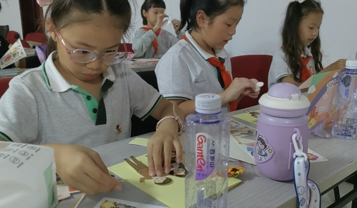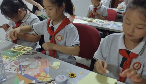 介紹完成后,志愿者們依次為小朋友們分發(fā)制作賀卡的材料,小朋友們按照說明書的講解拆開包裝,擺好材料,進(jìn)行設(shè)計(jì),然后拼接粘貼,將內(nèi)卡片以及外卡片一一制作成功,最后使用金色絲線將卡片綁上精致的蝴蝶結(jié),大家的教師卡賀卡就完美制作成功了。
