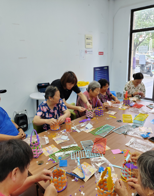 現(xiàn)場(chǎng),老年朋友們化身好學(xué)生,認(rèn)真聽講關(guān)于制作手工花籃的要點(diǎn),趙老師一步一步細(xì)心教導(dǎo),講解注意事項(xiàng),大家用靈活的雙手,時(shí)而折,時(shí)而剪,一會(huì)兒功夫,一個(gè)個(gè)純手工“打造”的精美小花籃就初現(xiàn)成型,再用針線縫合,很快,老人拿著自己制作的成品花籃,個(gè)個(gè)都是做工精美,且形狀多樣。大家邊制作邊交流,溝通心得體會(huì),分享各自的制作靈感,拉進(jìn)了彼此間的關(guān)系,增進(jìn)了感情,手工活動(dòng)不僅有助于提高老年人的動(dòng)手能力,還豐富了大家的精神文化生活,讓老人們?cè)趭蕵?lè)的同時(shí)鍛煉了身體。