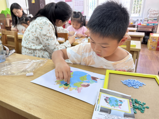 通過(guò)這一活動(dòng),孩子們體驗(yàn)到了手工創(chuàng)作的樂(lè)趣,也學(xué)習(xí)到了環(huán)保知識(shí)。在整個(gè)制作過(guò)程中,孩子們用心剪裁和打造材料,將紐扣巧妙地拼貼成美麗的圖案。每一個(gè)細(xì)致的嵌合都像是一個(gè)環(huán)保的小故事,訴說(shuō)著他們對(duì)待資源的珍惜和對(duì)環(huán)境的關(guān)注。紐扣的獨(dú)特質(zhì)感和色彩豐富的圖案不僅給作品增添了美感,還更加深刻地呼應(yīng)了環(huán)保的理念。