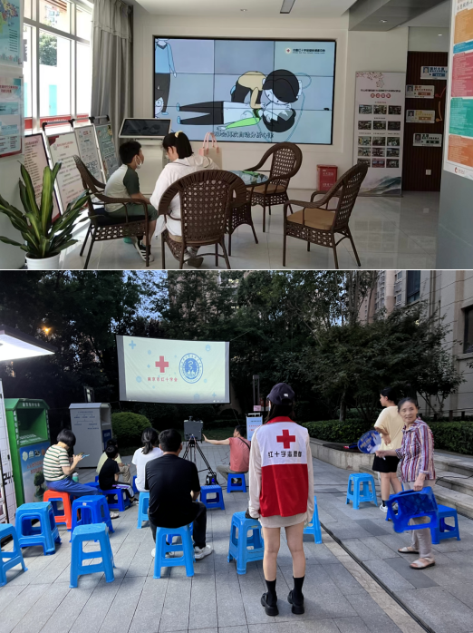 同時,為了更好地普及紅十字救護知識和技能,社區(qū)利用大屏幕設備和天街大屏,播放了一系列紅十字宣傳片。這些宣傳片涵蓋了疾病預防、突發(fā)事件處理、心肺復蘇等多個方面的內容,生動形象地展示了急救操作步驟和技巧。居民們在大屏前認真聆聽,不時稱贊這些宣傳片的實用性和教育性。