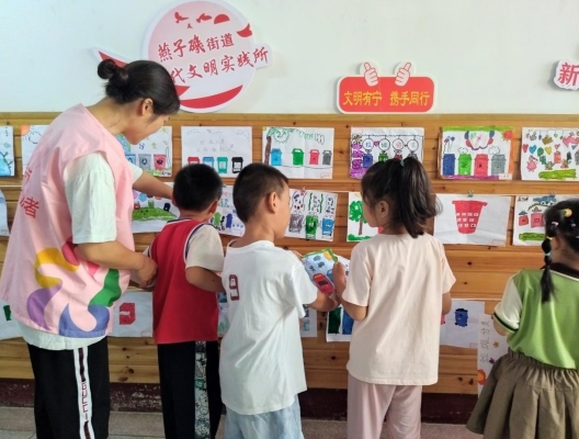 在展覽期間,來(lái)自電瓷社區(qū)的巾幗志愿者們熱情地帶領(lǐng)著一群幼童們一起參觀(guān)展覽,不僅僅是簡(jiǎn)單地展示畫(huà)作,而是通過(guò)詳細(xì)解讀每張畫(huà)作背后的主題和寓意,讓孩子們深入了解藝術(shù)作品的內(nèi)涵。巾幗志愿者們以生動(dòng)的方式向孩子們講解,讓他們對(duì)每幅畫(huà)作產(chǎn)生濃厚的興趣。