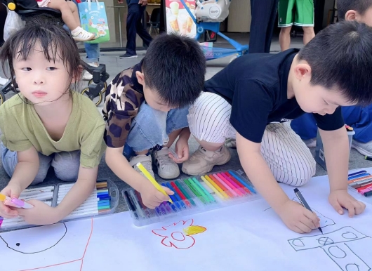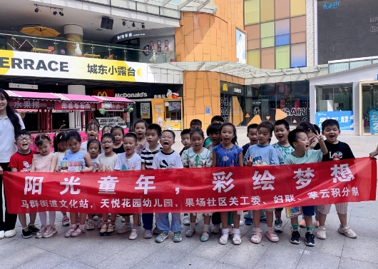 為不斷豐富社區(qū)居民文化生活內(nèi)涵,弘揚熱愛生活、發(fā)現(xiàn)美好的社區(qū)文化,2023年9月8日馬群街道果場社區(qū)、掌云+積分制工作小組聯(lián)合轄區(qū)天悅花園幼兒園組織幼兒園學(xué)生、家長在馬群招商花園城開展“陽光童年 彩繪夢想”彩繪涂鴉活動。